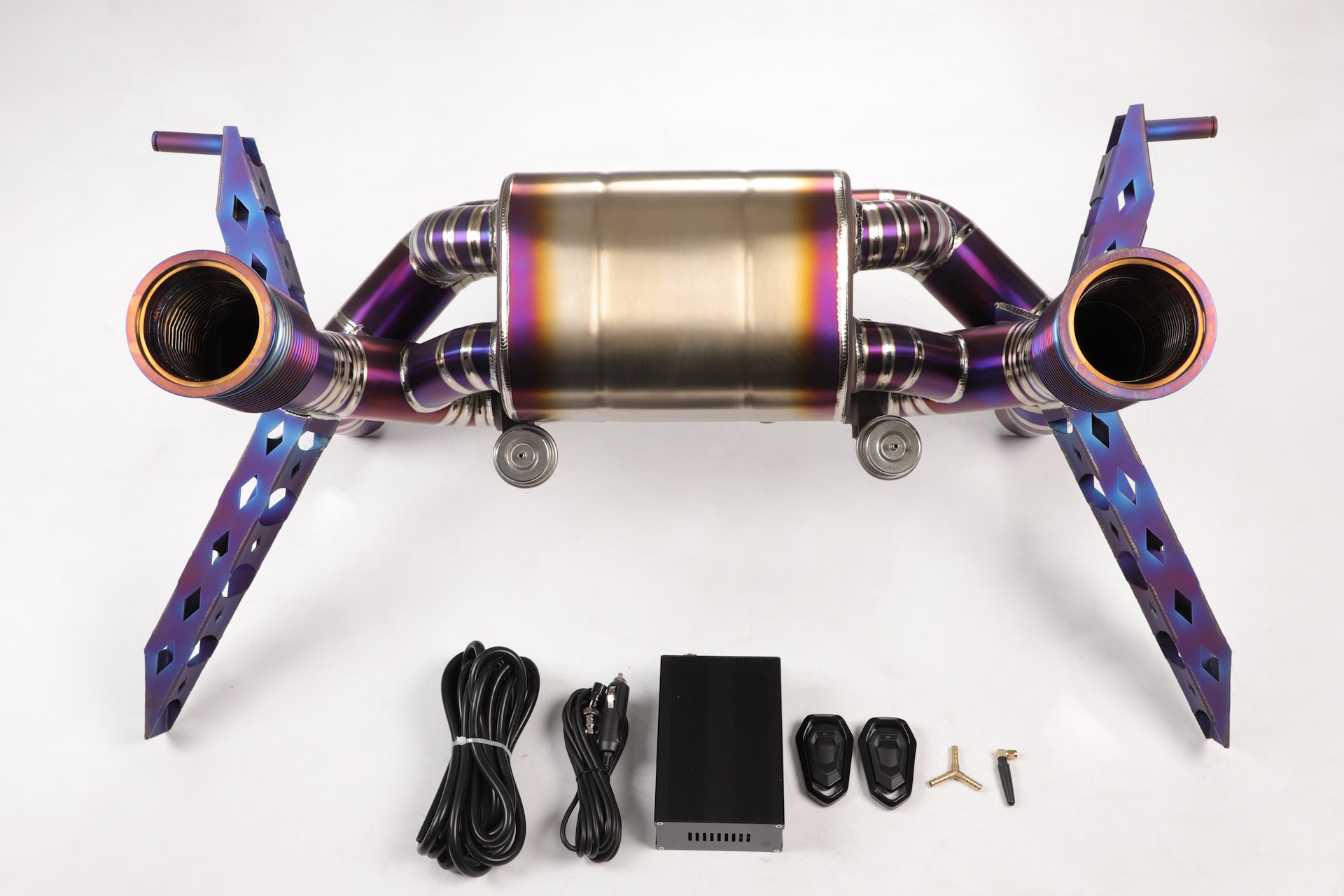Unleash the full potential of your Lamborghini Huracan EVO or STO Performante with our Titanium Cat-Back Exhaust System with Muffler, engineered to enhance both performance and sound while shedding weight and maintaining an aesthetic that commands attention. This exhaust system is designed for the discerning Lamborghini owner who demands superior sound, exquisite craftsmanship, and maximum power from their V10 engine.