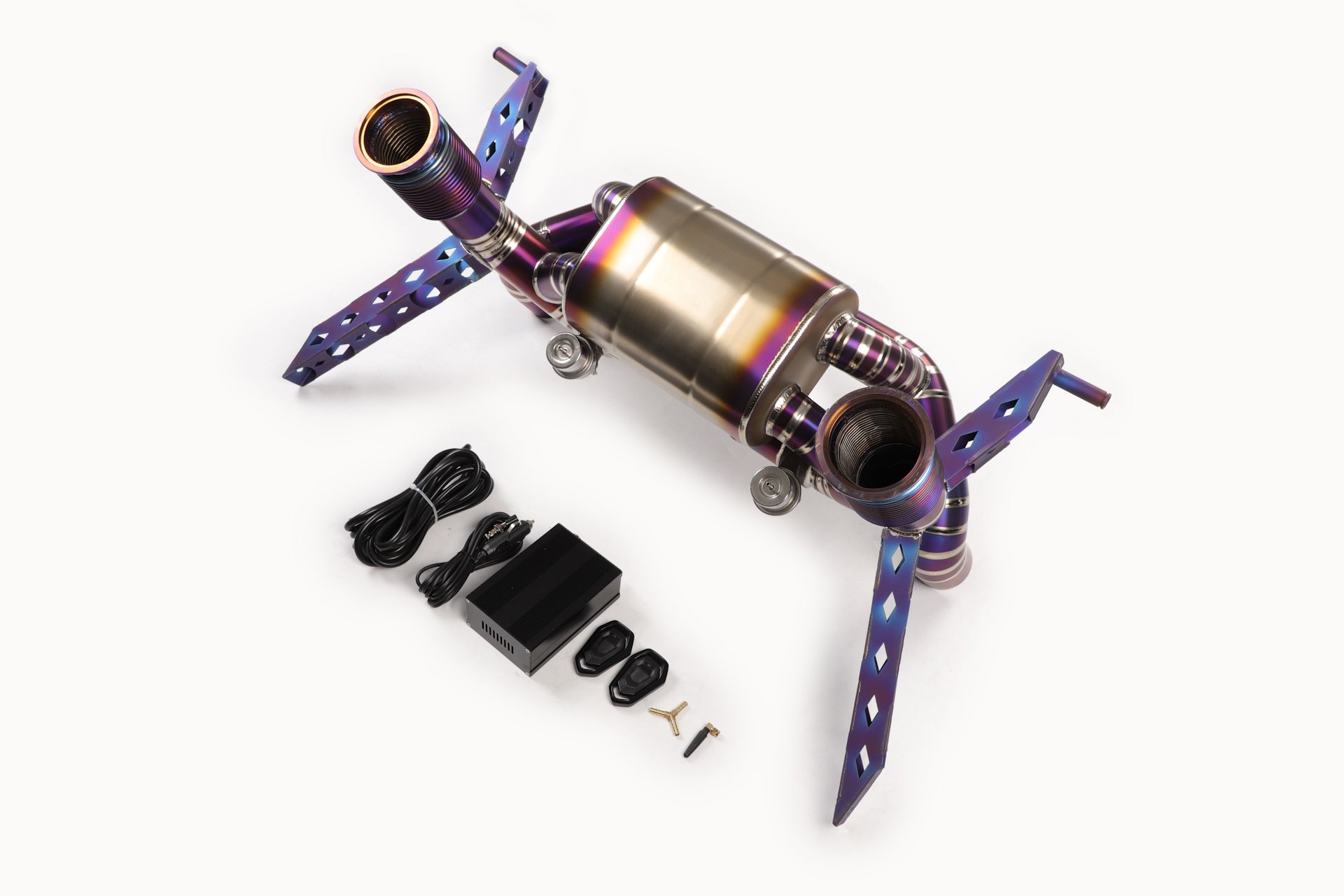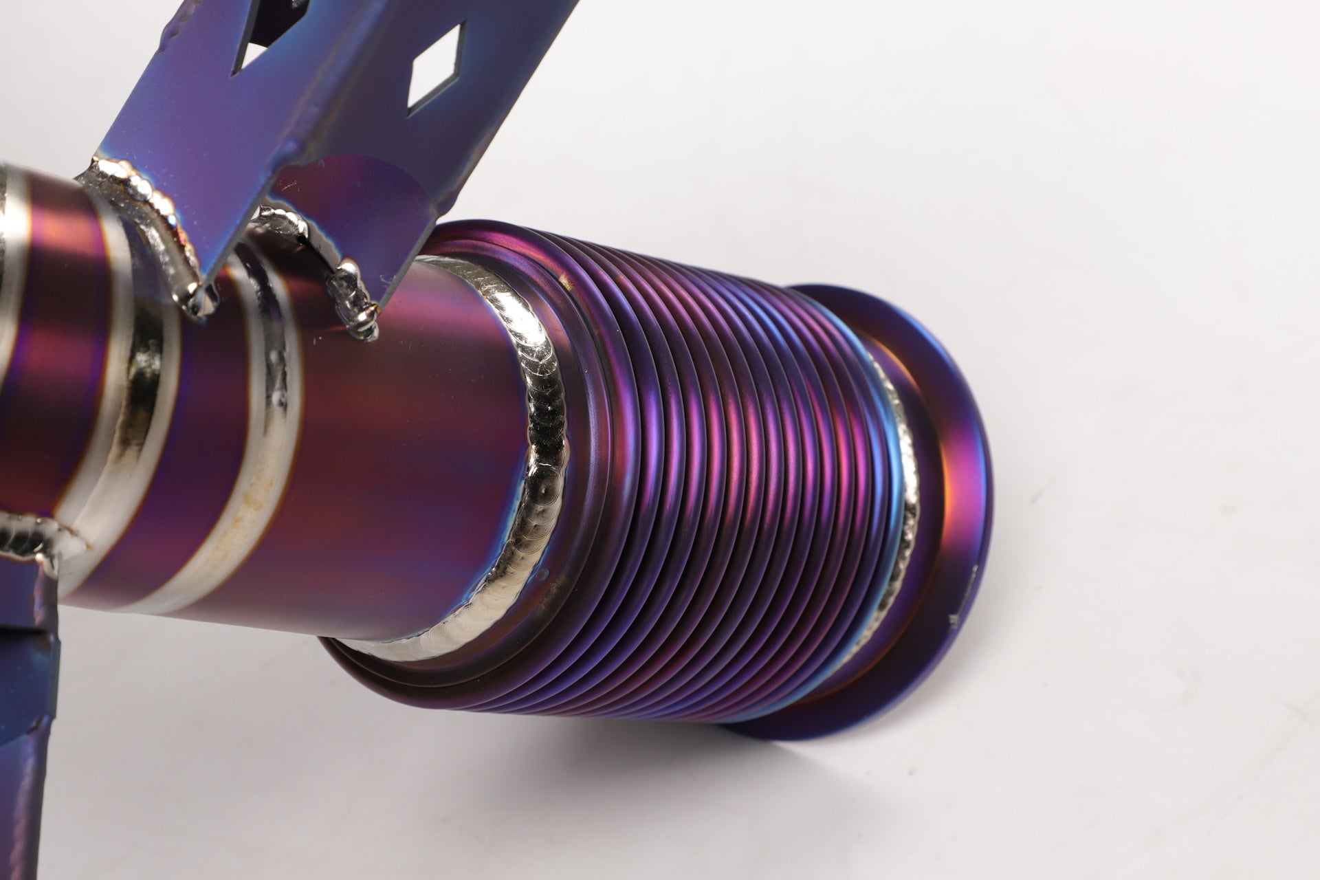 The signature brushed purple heat-treated finish not only delivers a stunning visual aesthetic, but the heat treatment ensures the color remains consistent, offering a sleek and durable look that lasts. The system retains the factory-style vacuum actuators, giving you the option to control the exhaust note through stock controls or take full control with the included remote system.