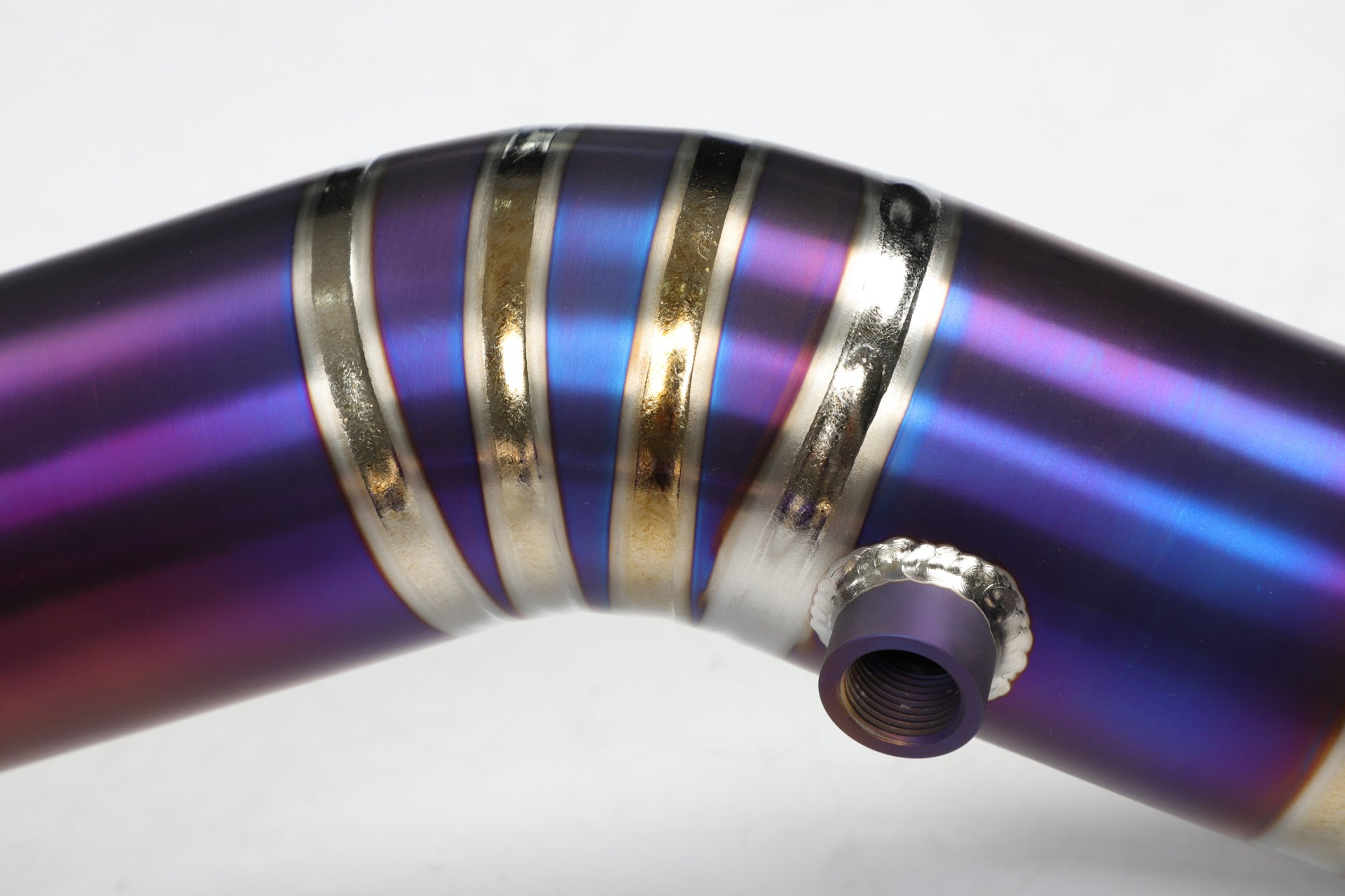 Crafted from large-diameter 3” 1.2mm DOM titanium tubing, these downpipes dramatically reduce exhaust restrictions, allowing for faster turbo spool, increased boost potential, and enhanced throttle response. The smooth flared transition from the turbocharger ensures optimal flow characteristics, minimizing turbulence while maximizing efficiency.