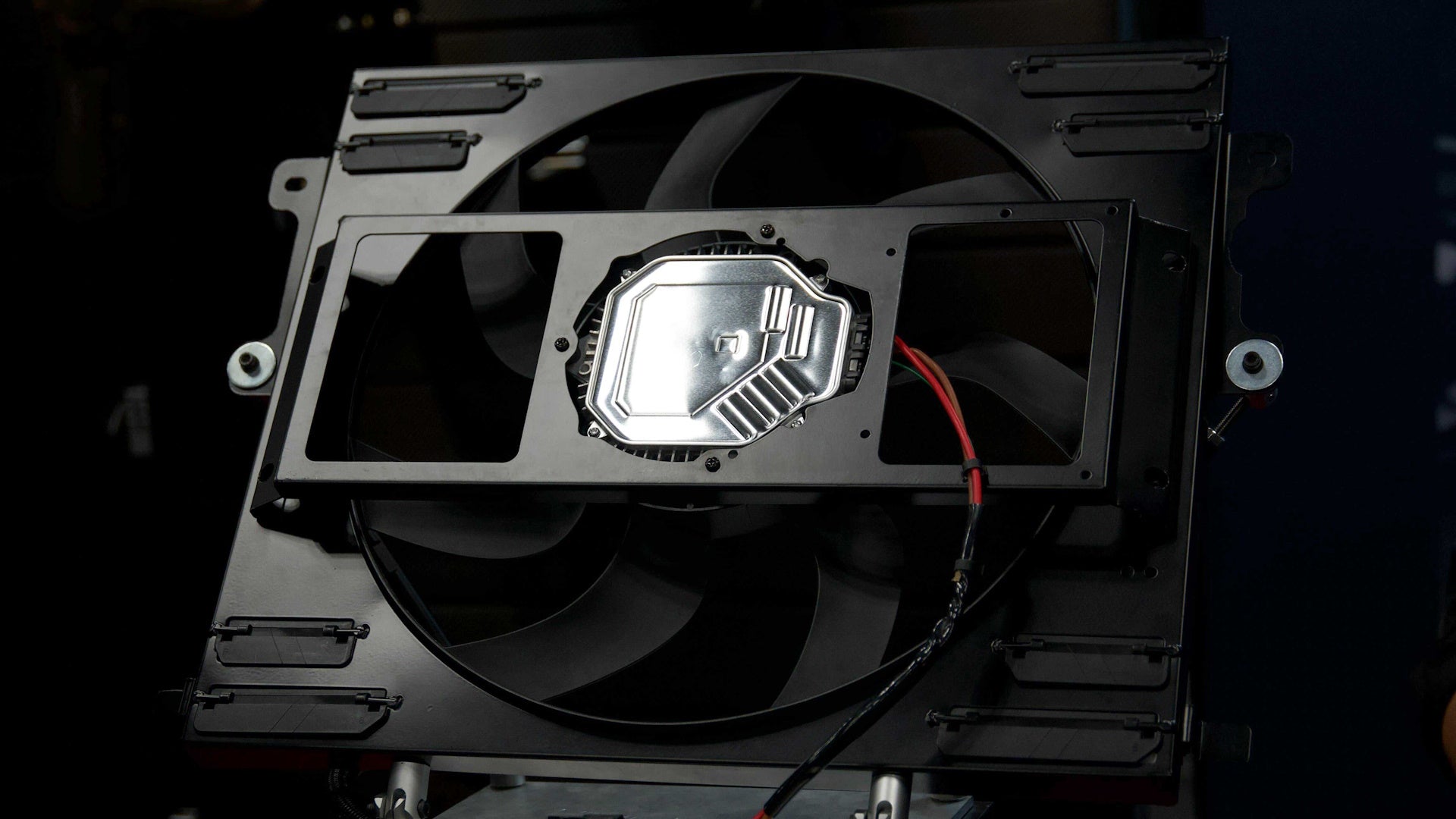 The rugged aluminum shroud is architecturally reinforced for superior strength, ensuring optimal airflow distribution across the radiator core. Additionally, the integrated pressure relief flaps allow high-speed airflow to bypass the fan when needed, preventing drag and optimizing cooling at highway speeds.